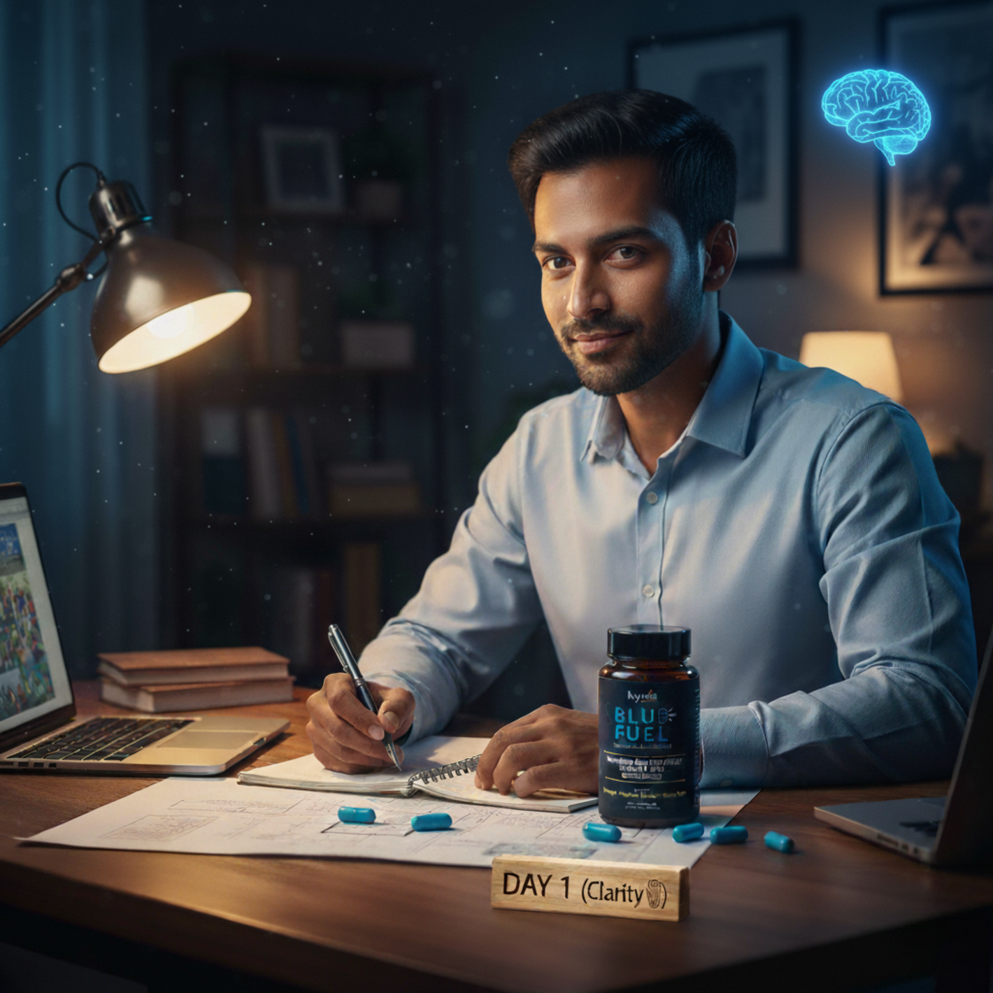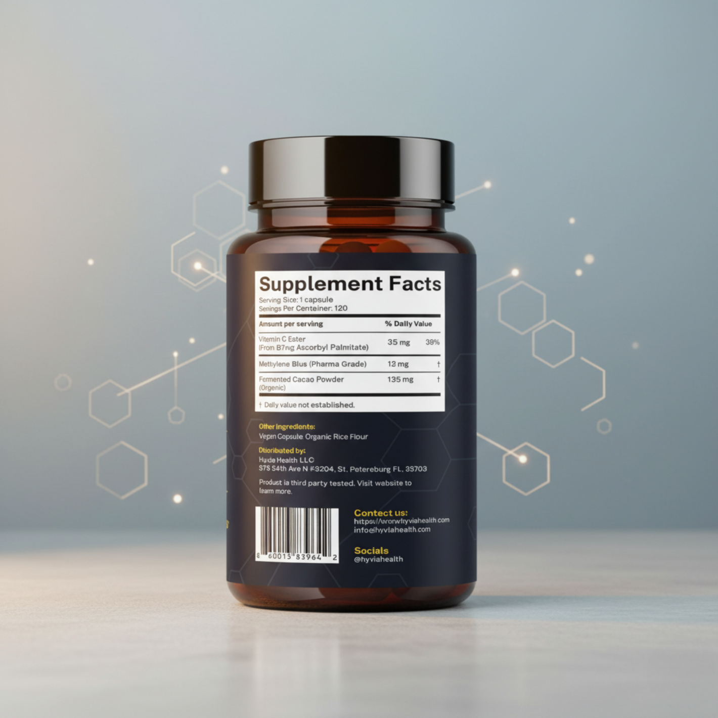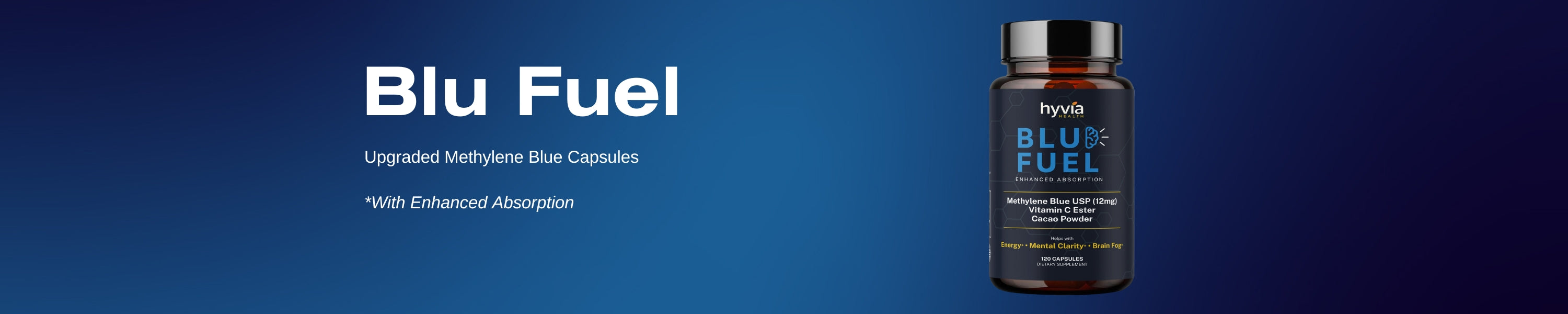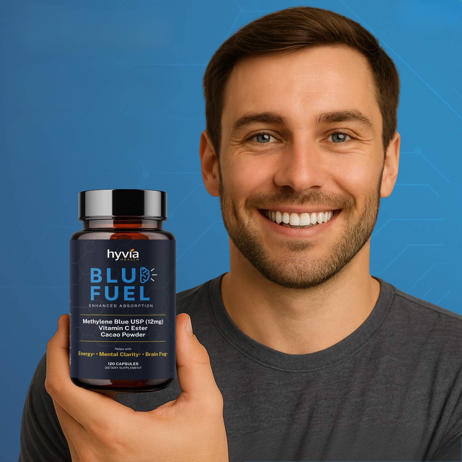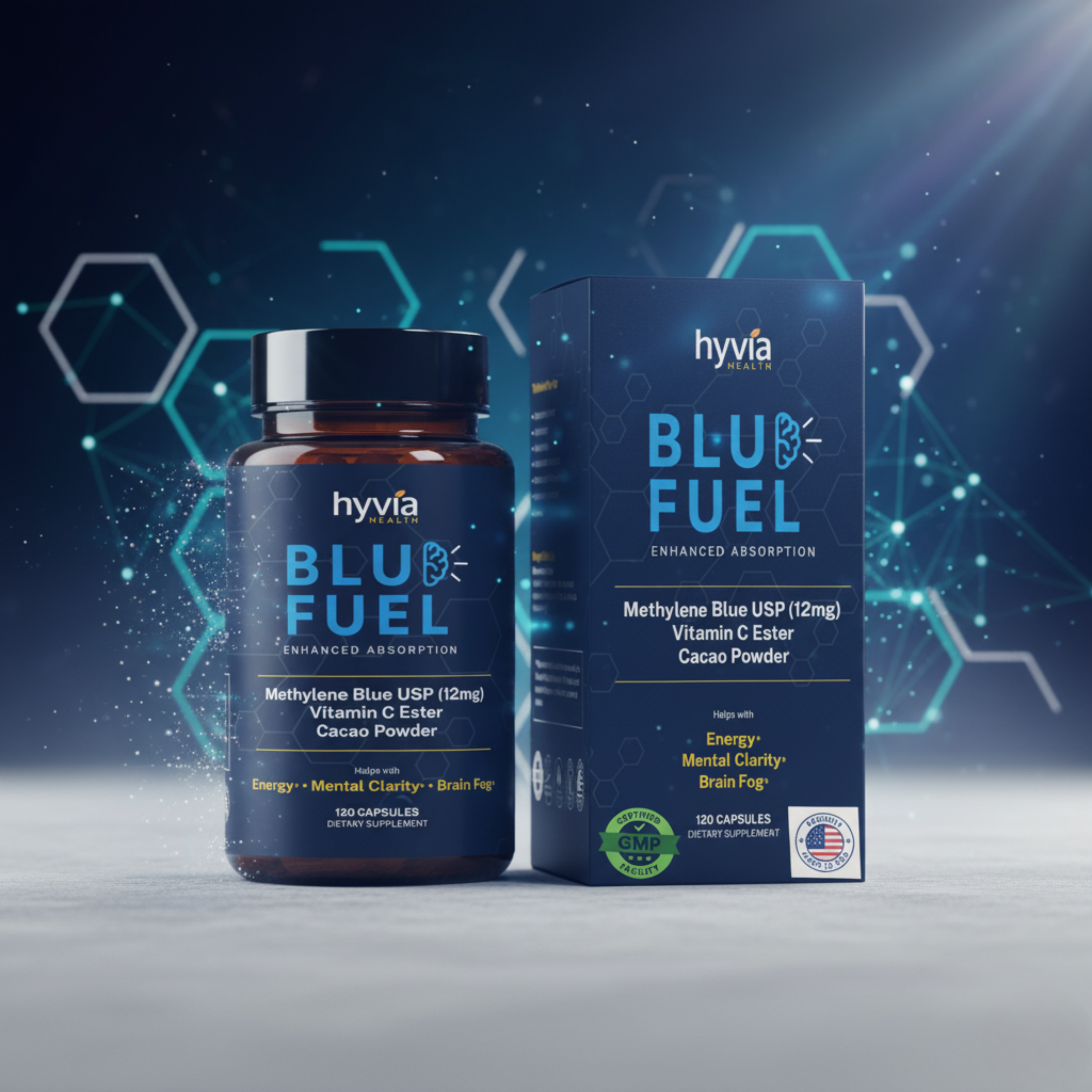 At Hyvia Health, we believe that the key to a vibrant and active life lies in the clarity of your mind and the energy of your body. Our BluFuel supplement combines cutting-edge ingredients like Methylene Blue, Vitamin C Ester, and Organic Cacao Powder, designed to support mental clarity, energy, and focus.